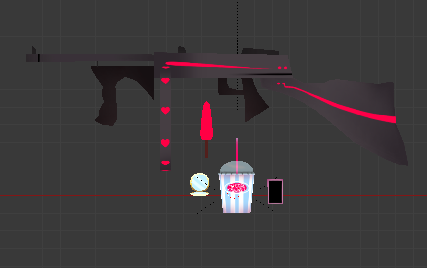 5 accessories, including Angel's tommy gun,